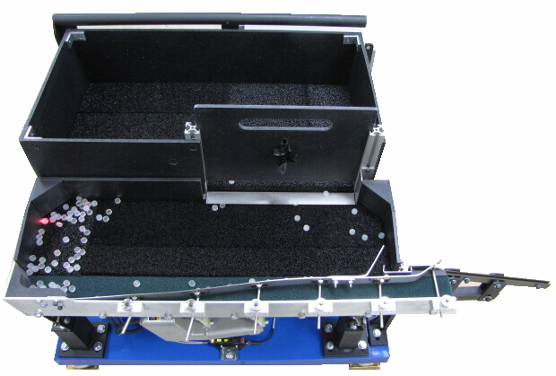 CDS Manufacturing completed an order for a 5 up spheroid sorter. The system automatically inspects spherical product for flats, doubles, clusters, and debris. Parts are fed from a common hopper to a vibratory surface that separates the spheres according to their individual quality. Parts are sorted at an estimated rate of over 200,000 parts per minute. Sorted parts are stored in common storage bins.